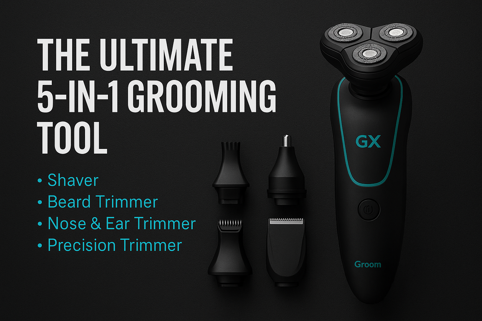 GroomX™ Digital 5-in-1 Shaver – Waterproof, Rechargeable & Precision Beard Trimmer